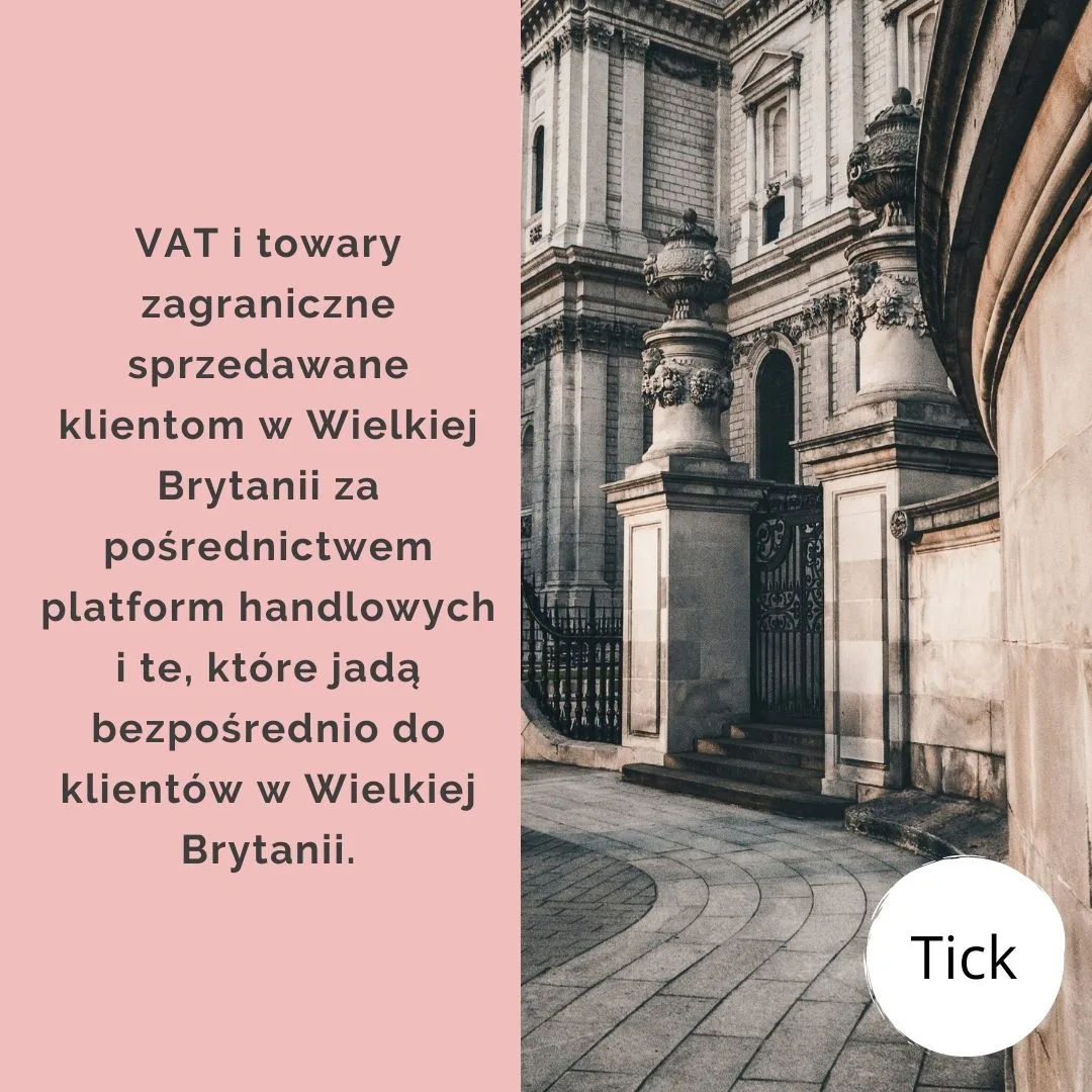 w Wielkiej Brytanii i sprzedawane za pośrednictwem platformy internetowej klientom w Wielkiej Brytanii (Anglii, Szkocji i Walii) będą obciążane brytyjskim podatkiem VAT od dostaw w punkcie sprzedaży w Wielkiej Brytanii i UE i sprzedawane za pośrednictwem rynku internetowego klientom w Irlandii Północnej będą podlegały naliczeniu podatku VAT od importu.